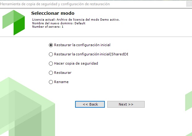 Después de culminada la descarga se mostrará la página principal de la herramienta de copia de seguridad y restauración.