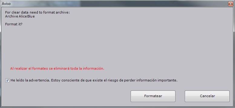 Para eliminar los metadatos y registros de un archivo seleccione la opción Borrar los datos de análisis offline (3) y confirme el formateado del archivo.