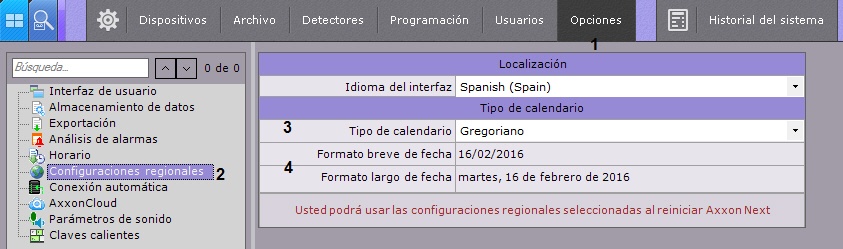 Al trabajar con el Paquete de software Axxon Next el usuario podrá elegir personalmente el tipo de calendario a usar (gregoriano o persa).