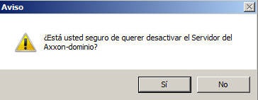 - En la ventana que aparezca confirmar la eliminación del Servidor en el Axxon dominio presionando el botón Sí.