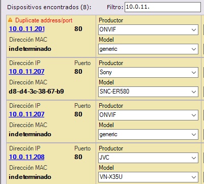 Además, puede filtrar las cámaras de vídeo desde una subred.