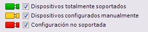 Dependiendo del estado de los dispositivos encontrados, los los resultados de la búsqueda se marcarán en diferentes colores.