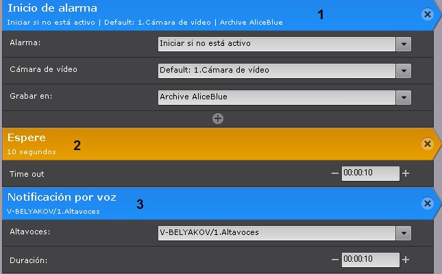 Si no se produce este evento, el tiempo de espera es de 4 minutos (3). Al culminar este tiempo, surgirá una advertencia sonora (4) se cumplen las acciones siguientes de la macro, siempre que existan.