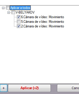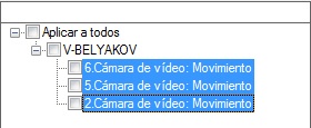 Se abrirá la lista de detectores del mismo tipo en el Axxon-dominio. Para seleccionar rápidamente varios detectores, mantenga pulsada la tecla de mayúsculas, seleccione el primer detector y el último detector donde se debe aplicar la configuración. La selección de cualquier detector dará lugar a la selección de todos ellos.
