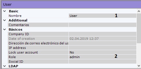 Si es necesario, introduzca la información adicional sobre el usuario (E-mail, dirección IP, ID, ID de la empresa, etc.) en los campos correspondientes.