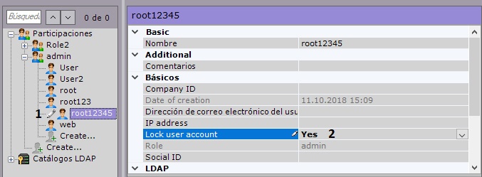 Para desbloquear en el campo Lock user account debe seleccionar No.