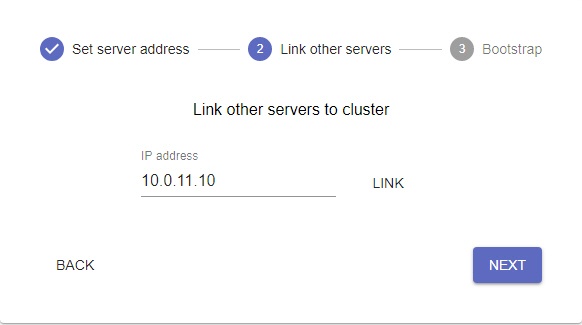 Añada los Servidores necesarios al clúster. Para ello, introduzca la dirección IP y haga clic en Link.