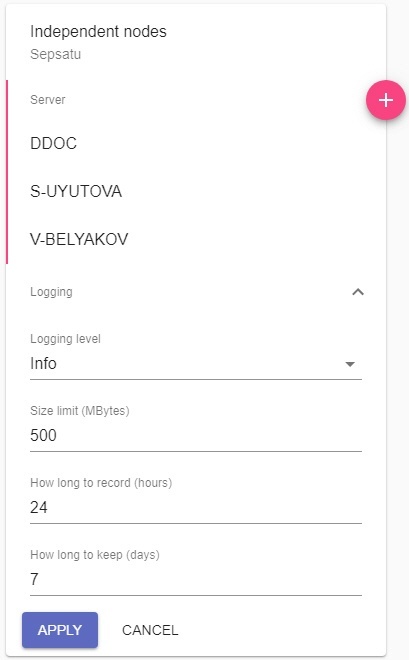 3. Haga clic en el botón  y seleccione los Servidores en los que se iniciará el nodo independiente.