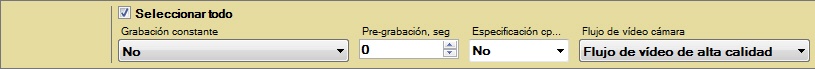 - Configure los parámetros de grabación en el archivo en forma grupal, resaltada en amarillo. Los parámetros indicados de grabación en el archivo serán configurados para las videocámaras seleccionadas.