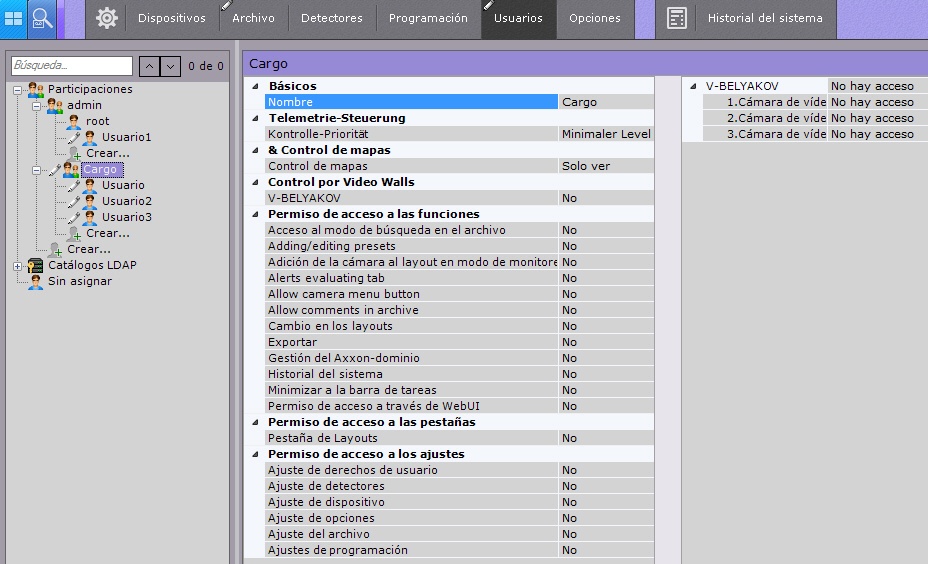 En el software de gestión de vídeo (VMS) Axxon Next cada usuario del sistema cuenta con derechos, determinados de por el cargo.