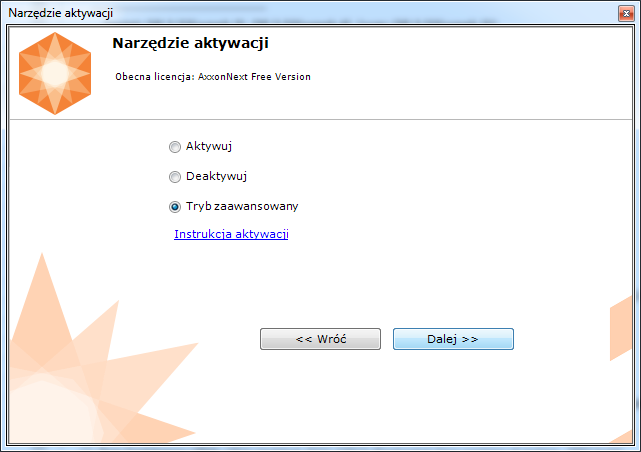 1. Na stronie głównej narzędzia aktywacyjnego wybierz opcję Tryb zaawansowany i kliknij przycisk Dalej.