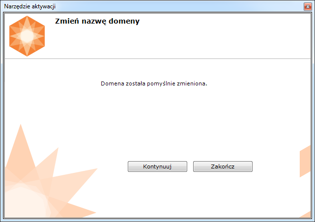 Aby powrócić do strony głównej narzędzia aktywacyjnego, kliknij przycisk Kontynuuj, aby zakończyć działanie - kliknij przycisk Zakończ.