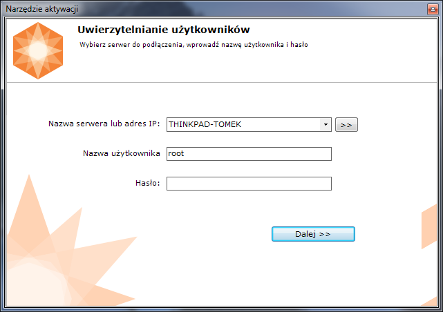 Po poprawnym zalogowaniu, narzędzie aktywacyjne wyświetli ekran główny.