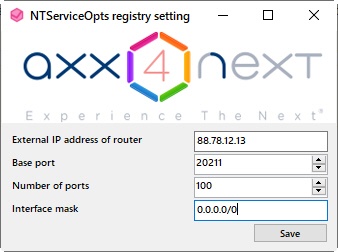 Ustal zasięg portów oraz publiczny adres IP routera na każdym Serwerze, który ma zostać dołączony do Domeny Axxon (zobacz: Narzędzie ustawień sieciowych).