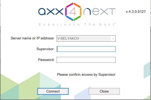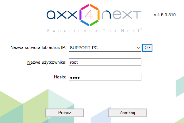 Klient Axxon Next zostanie uruchomiony. Wyświetli się okno autoryzacyjne.