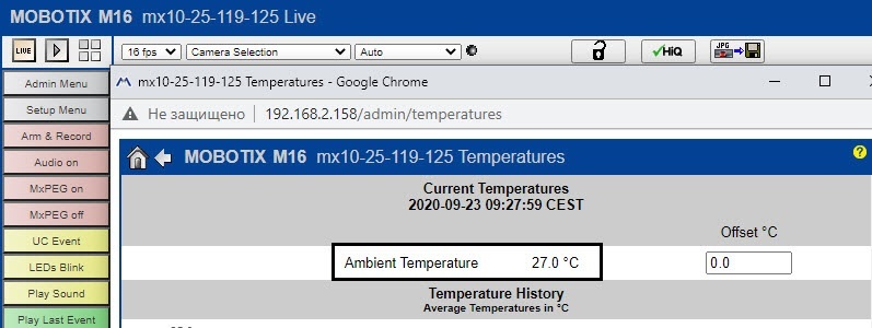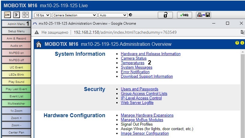 - Przejdź do menu administratora (1), i wybierz Temperatures (2).