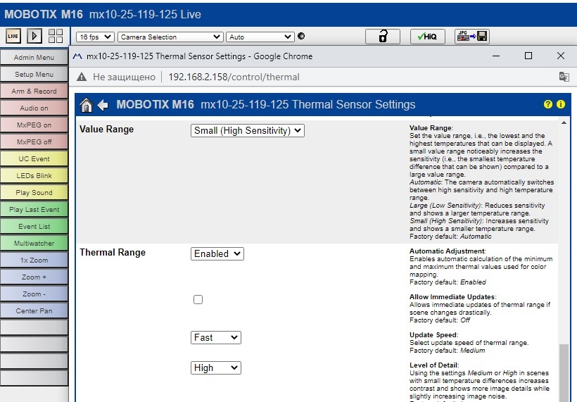 - Określ wartości parametrów Value Range oraz Thermal Range, jak na zrzucie ekranu.