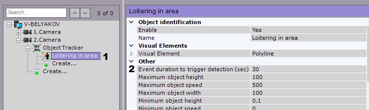2. W polu Event duration to trigger detection (sec) (2), wpis maksymalny czas wałęsania się w sekundach. Wartość powinna znajdować się w zasięgu [0, 3600].
