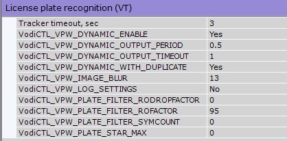 Parametr Opis VodiCTL_VPW_DYNAMIC_ENABLE Włącz/wyłącz śledzenie przy rozpoznawaniu tablic rejestracyjnych (domyślnie włączone).