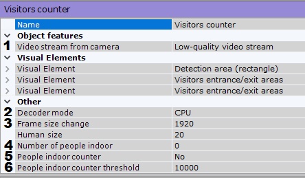 Domyślnie narzędzie detekcji generuje zdarzenia: Camera. Visitor access in the direction of "Entrance" oraz Camera. Visitor access in the direction of "Exit". Jeśli wymagana jest detekcja całkowitej liczby zwiedzających, oraz kontrola liczby zwieizających lub notyfikacje o przekroczeniu liczby zwiedzających są wymagane, wykonaj następujące kroki: