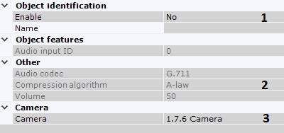 - Podczas konfiguracji głośników urządzenia IP możesz także ustalić inne parametry, takie jak algorytm kompresji do przesyłu plików audio do głośników w celu ich odtworzenia (2). Możliwe do konfiguracji parametry głośnika są określane przez protokół integracji urządzenia IP oraz Pakietu Oprogramowania Axxon Next.
