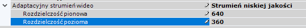 Jeśli żadna z rozdzielczości nie zostanie wyznaczona (wartość 0), adaptacyjny strumień wideo będzie posiadać tę samą rozdzielczość, co źródłowy strumień wideo.