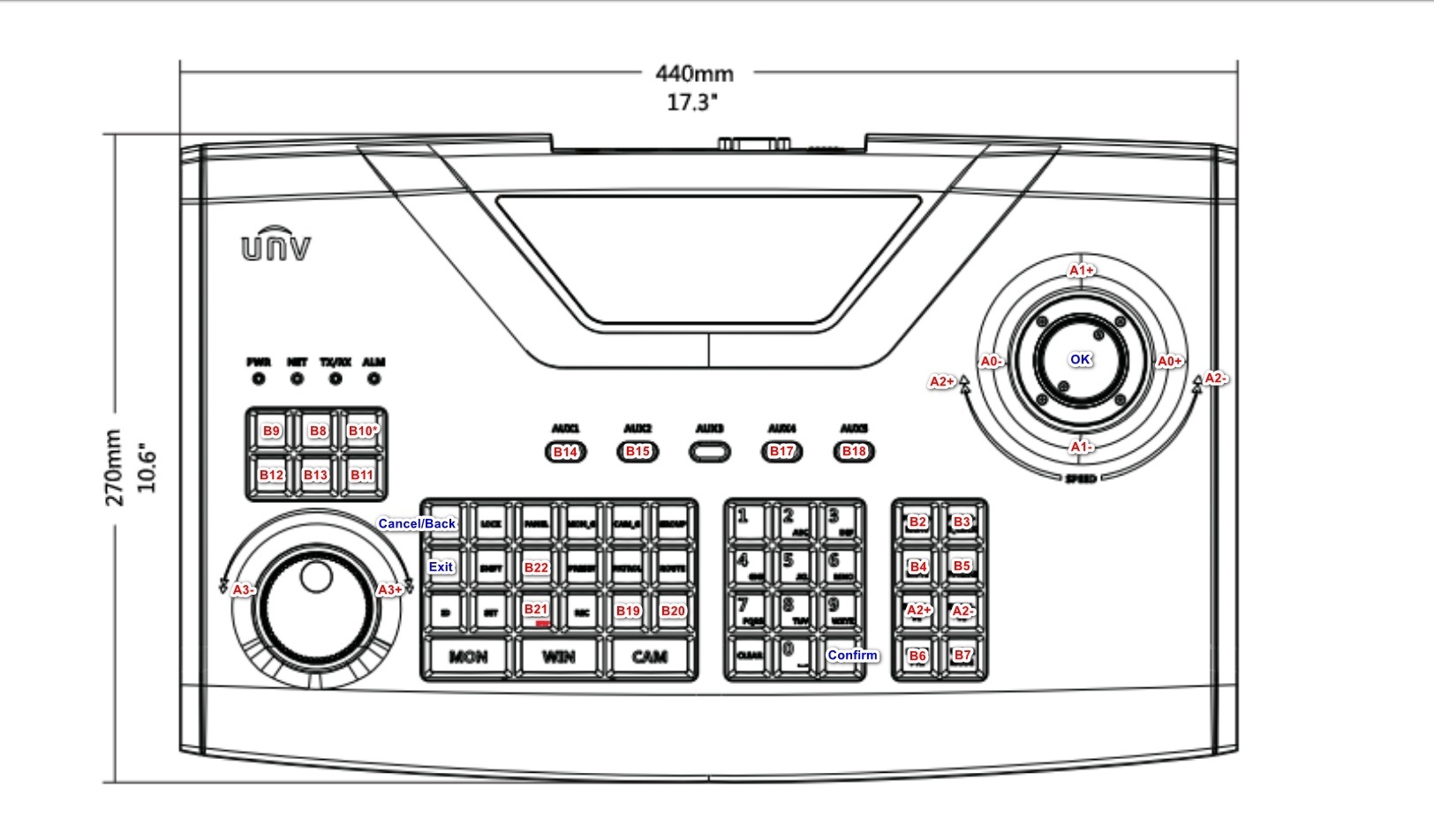 Schemat urządzenia kontrolnego PTZ UNIVIEW KB-1100 jest przedstawiony na poniższym obrazie.