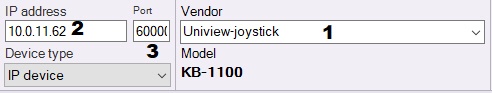 Skonfigurować czteroosiowe urządzenie zdalnej kontroli PTZ Uniview KB-1100 należy przed utworzeniem odpowiedniego obiektu w Axxon Next VMS. Należy wykonać następujące kroki: