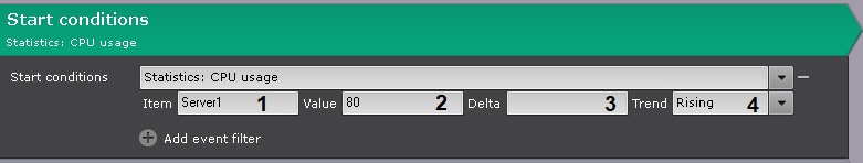 Wymagania wyzwalania nie są dla obecnych, ale przyszłych zdarzeń. Dla przykładu: gdy zużycie CPU to 85%, i skonfigurowane zostanie makro wyzwalane, gdy zużycie procesora przekroczy 80%, makro zostanie zainicjowane dopiero następnym razem, gdy obciążenie przekroczy 80%.