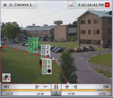 Jeśli śledzenie obiektów w oknie podglądu jest aktywne, własności śledzonego obiektu (wysokość oraz szerokość jako procent wysokości oraz szerokości ramki) są wyświetlane podczas wyświetlania klipów wideo znalezionych za pośrednictwem zaawansowanego wyszukiwania w Archiwum.