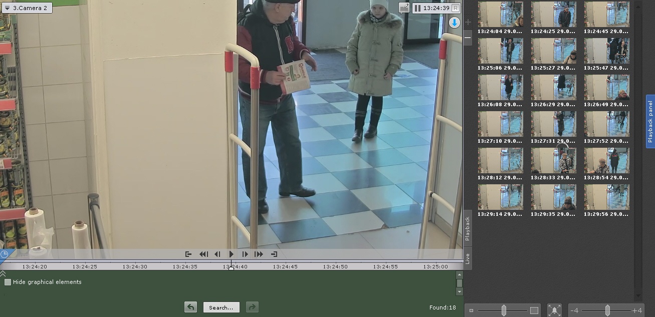 Domyślnie odtwarzanie rozpoczyna się od momentu określonego pod miniaturą klipu wideo. Istnieje możliwość użycia panelu kontrolnego (3) w celu zmiany czasu rozpoczęcia odtwarzania. Maksymalne przesunięcie do lewej oznacza rozpoczęcie odtwarzania o 4 sekundy wcześniej niż czas rozpoczęcia. Maksymalne przesunięcie do prawej rozpoczyna klip 4 sekundy później.