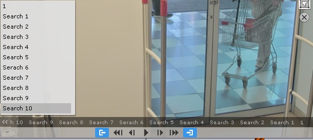 Jeśli w systemie dostępne są zapytania dla zaawansowanego wyszukiwania w archiwum (Forensic Search) dla danej kamery, odnośniki do zapytań będą dostępne w lewym prawym rogu okna podglądu kamery.