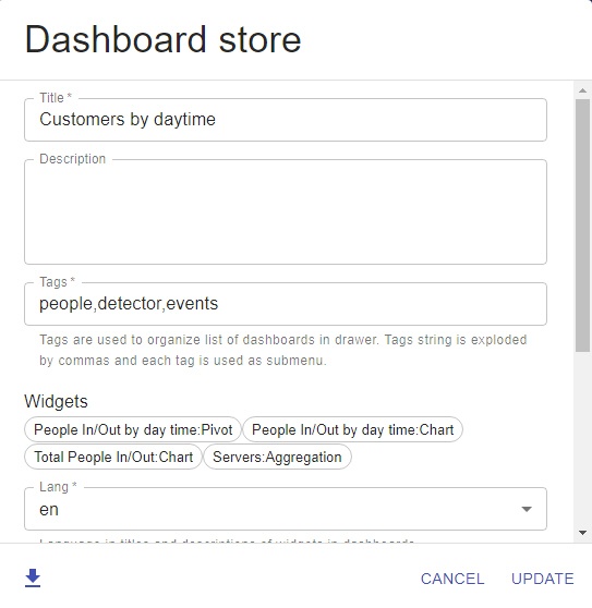 - W formularzu zapisywania dashboardu naciśnij Update.