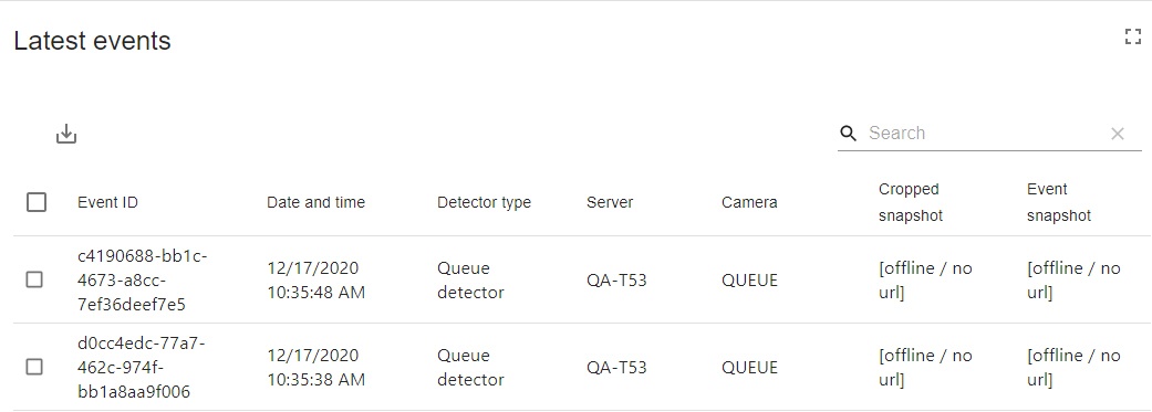 Podczas pracy z widżetami typu Events dostępne są następujące opcje: