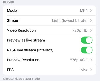 - Enable the RTSP live stream (Intellect) if it is necessary to receive audio from the Intellect Server. Works in conjunction with the MP4 playback format.