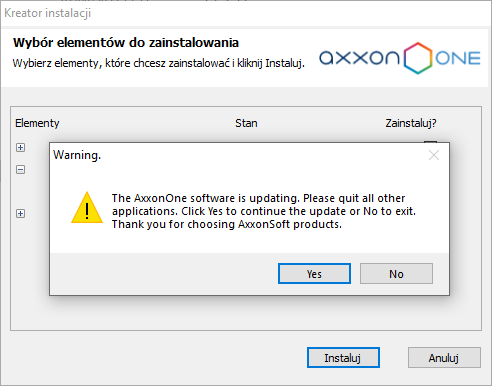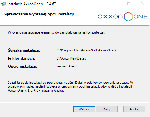 2. Uruchom instalator Axxon One. Deinstalacja Axxon Next nie jest wymagana.