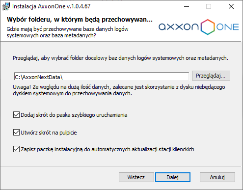 Domyślnie podczas aktualizacji z Axxon Next do Axxon One ścieżka instalacji nie ulegnie zmianie.