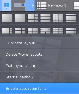 If autozoom is activated for one or more cameras in a layout, by default the menu displays the Disable autozoom for all option.