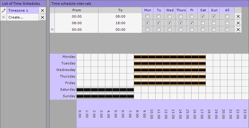 in the corresponding row.A visual display of time intervals for each day of the week is provided on the time chart.