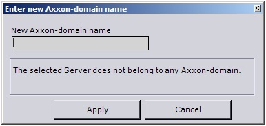The Name new Axxon Domain window will appear. In the New Axxon Domain name field, enter the Axxon Domain name to create a new group of computers based on the Server and click Apply.