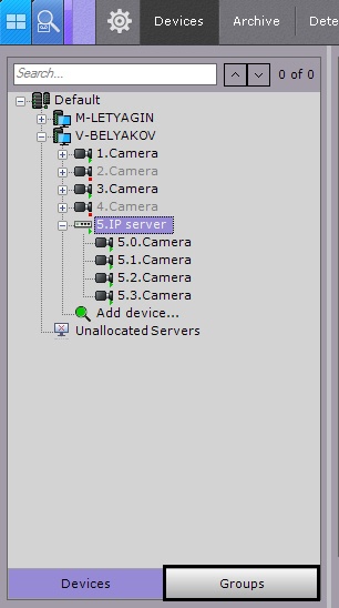 Video camera groups are configured through the interface using the Devices tab (under Settings). To configure device groups, you must have the appropriate permissions to configure devices.