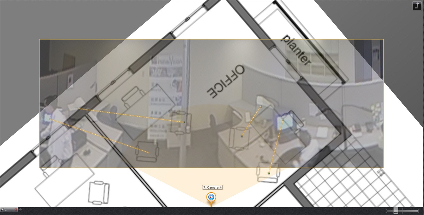 After a fourth link is added, an angle is chosen so that the surveillance objects in the video and on the map coincide.
