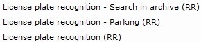 License plate recognition − Parking (RR) − recognizes license plates in real time. Recognition is performed in the Slow mode (video stream processing at a speed of up to 8 FPS).