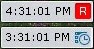 If the video is currently being recorded from the camera, the letter R is displayed in red to the right of the clock: