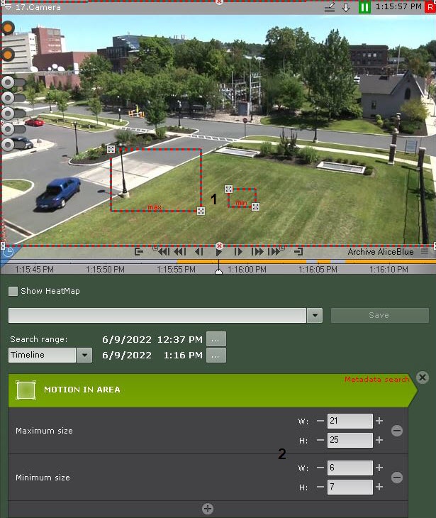 The minimum (or maximum) size of a moving object can be set using any of the following methods: