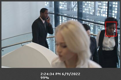 The video frames with faces satisfying search conditions will be displayed in the search results panel. A recognized face will be highlighted with a red frame, and the face similarity level (in %) will be shown below.