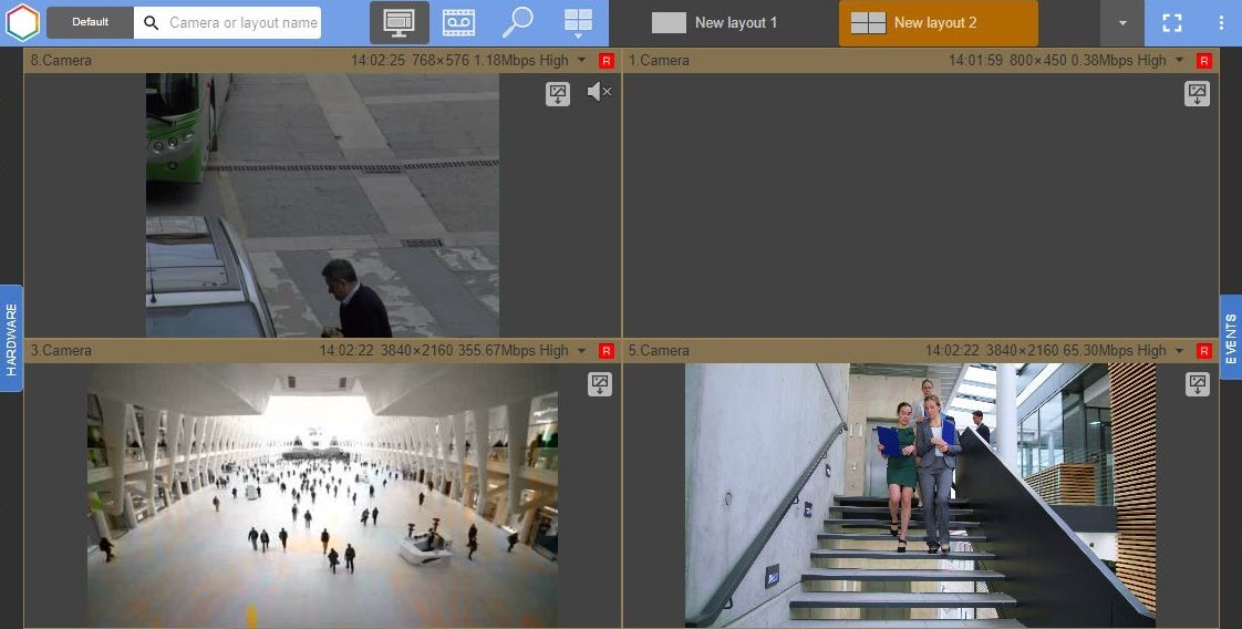Baja calidad | Se usa un flujo de vídeo de baja calidad en la ventana de vigilancia (ver Objeto cámara de vídeo). Cuando aumenta el tamaño de la ventana de vigilancia, el flujo de vídeo pasa a uno de alta calidad. |