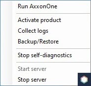La herramienta Axxon One Tray Tool se inicia automáticamente al iniciar el sistema y se encuentra en el área de notificaciones.
