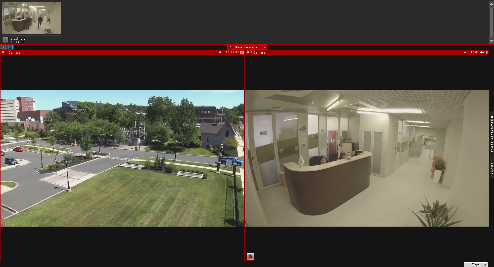Todos los eventos de alarma del sistema aparecen en el Panel de alarmas