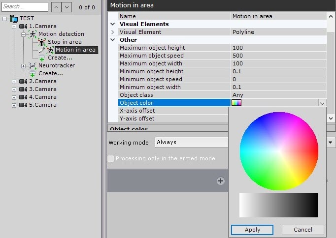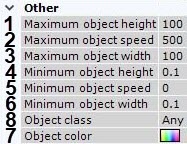 You can set parameters describing target objects' geometry and/or behaviour for each type of Scene Analytics tool.